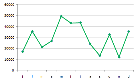 Wat is ongeveer het verschil tussen de rustigste en de drukste maand?