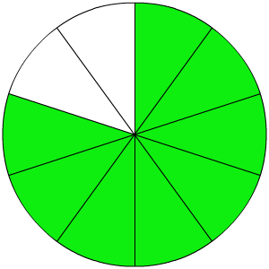 Van welke cirkel is 45,45% gekleurd?