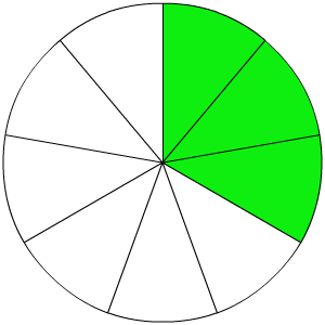 Van welke cirkel is 36,36% gekleurd?