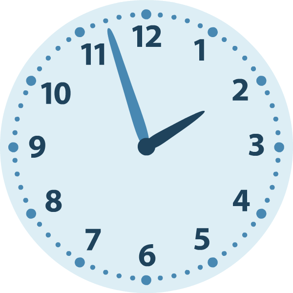 één minuut voor half drie