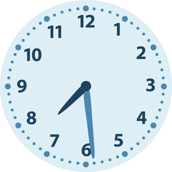 negen minuten voor half zes